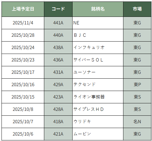2025年9月 月次新規上場申請承認銘柄数 10社